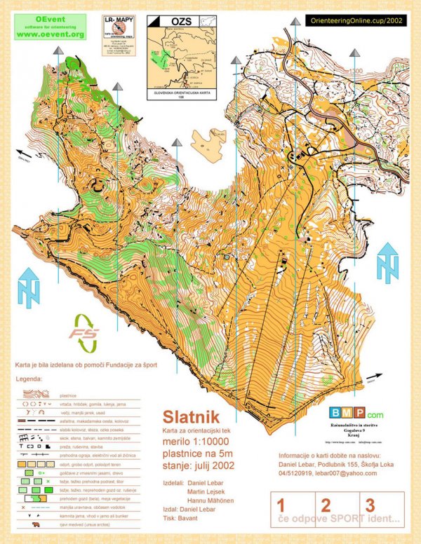 | 3 | Zadvorski hrib | MTB-O | 1:10000 | 2006 | 3.94km2 |
