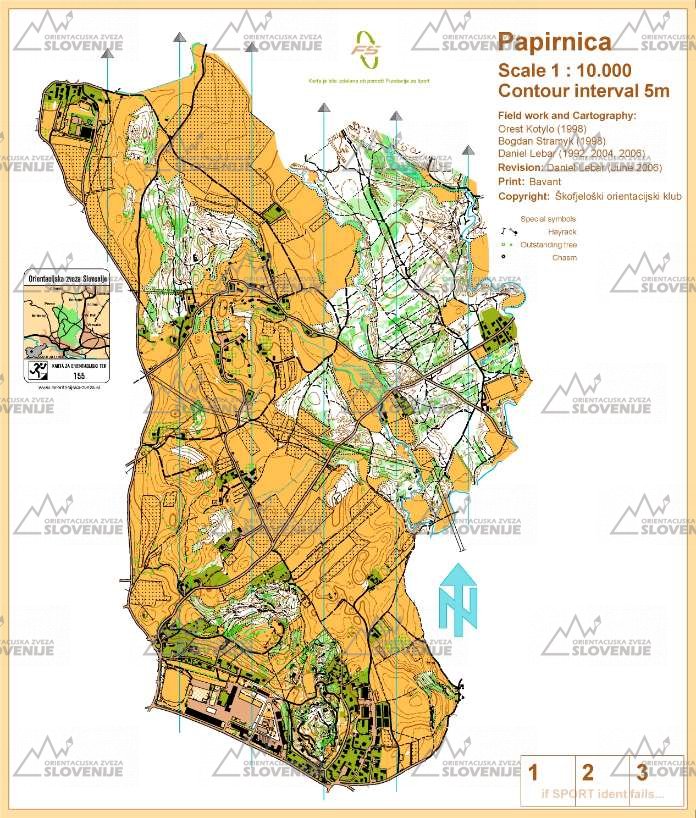 | 38 | Gozdna šola | ISOM | 1:5000 | 1995 | 0.19km2 |
